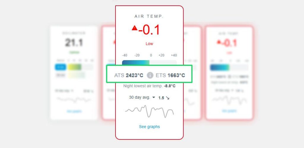 ATS, or active temperature sum, shows how much heat above 10 °C a plant has received during the growing season. It adds together all temperature degrees that exceed the threshold required for plant growth. ATS provides an overview of the total amount of heat available over the season, without considering how much of that heat the plant actually uses.